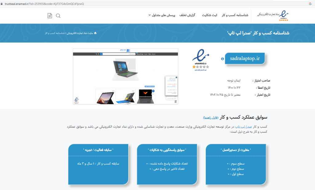 فروشگاه کامپیوتر و لوازم جانبی صدرا لپ تاپ از سال 1380 شروع به فعالیت کرد.